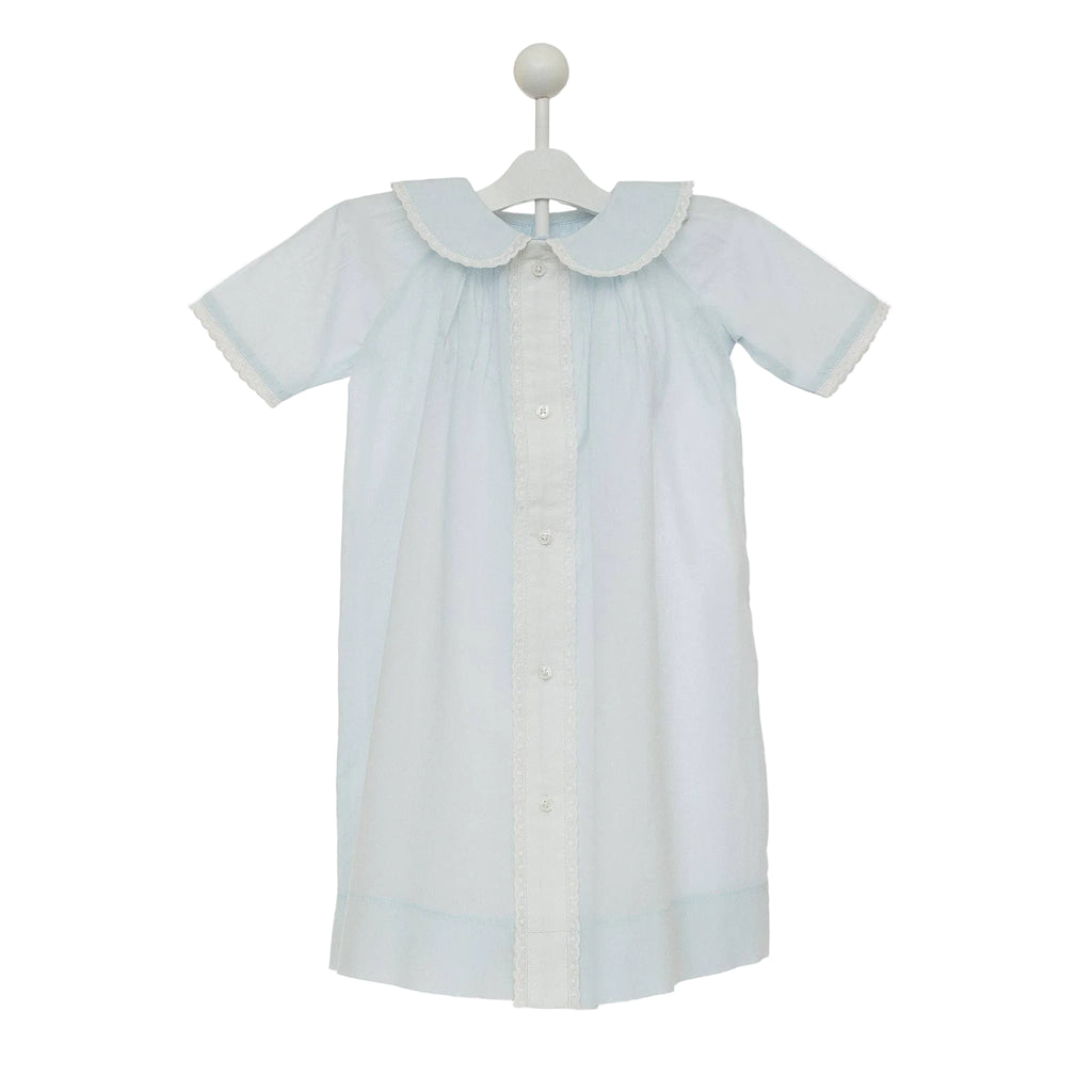 A timeless baby essential. This soft cotton daygown features delicate pintuck pleats, scalloped lace trim, and sweet sleeve details, paired with a coordinating diaper cover.