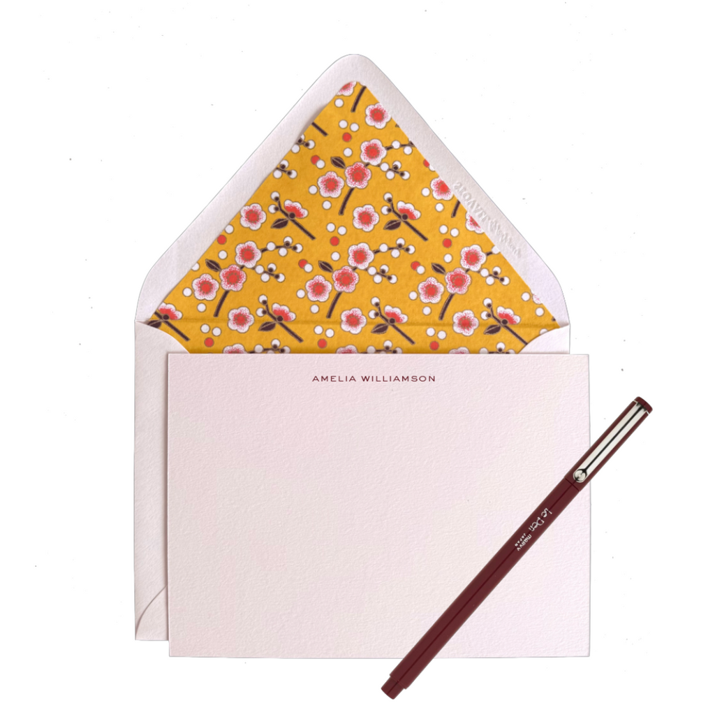 A classic, personalized stationery set—ready to gift or use right away. Each set is custom printed with your name in your choice of font style, making it perfect for thank you notes, thoughtful gifts, or everyday correspondence.