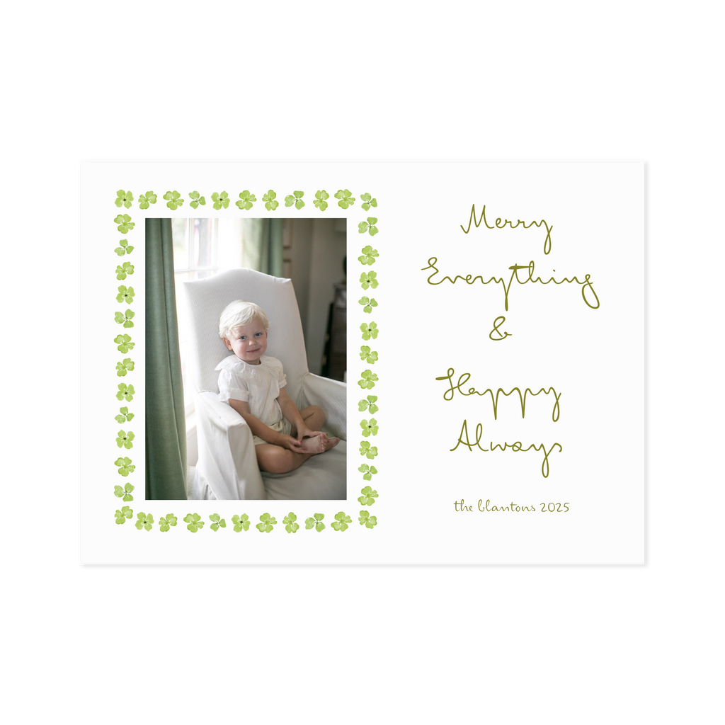 The Elena Card from the Lauren Q Collection features playful colors and original artwork, designed to bring a vibrant, modern feel to your holiday greetings. Measuring 5 x 7", this card is made for a 3.5x2.5" photo.
