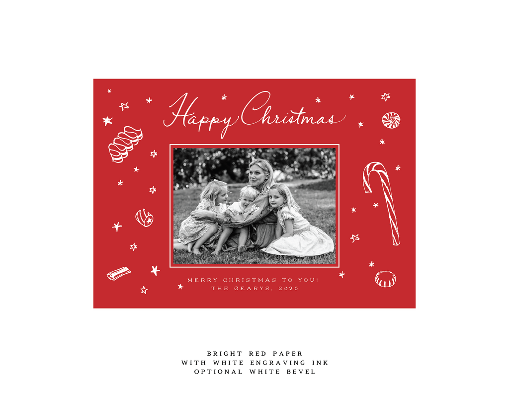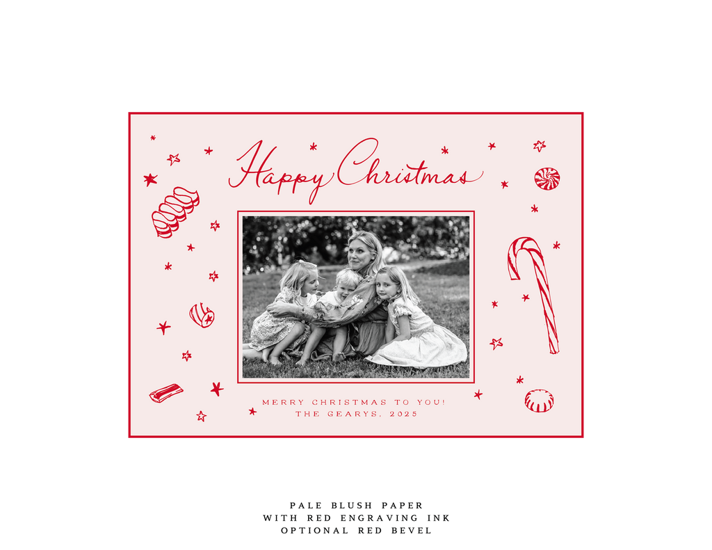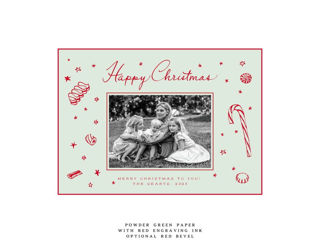 Measuring 5 x 7", the card is designed for a 3.5 x 2.5" photo and is printed on luxurious double-thick paper. Each card includes an engraved return address, and the envelope is perfectly matched to the paper color for a seamless finish. This thoughtful pairing of paper, ink, and artistry makes the Kirby Card a standout option in our holiday collection.