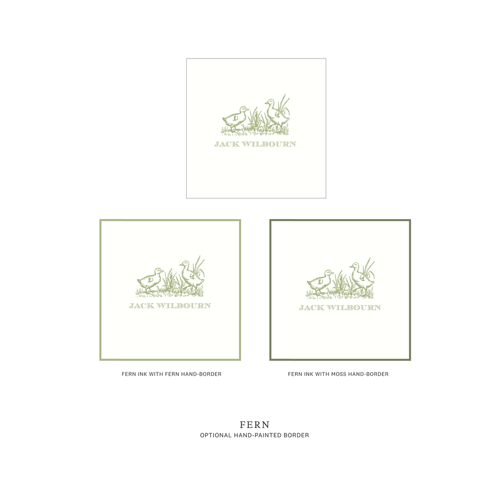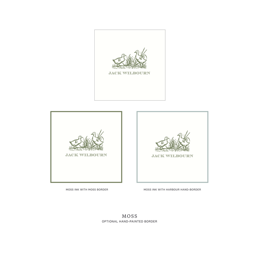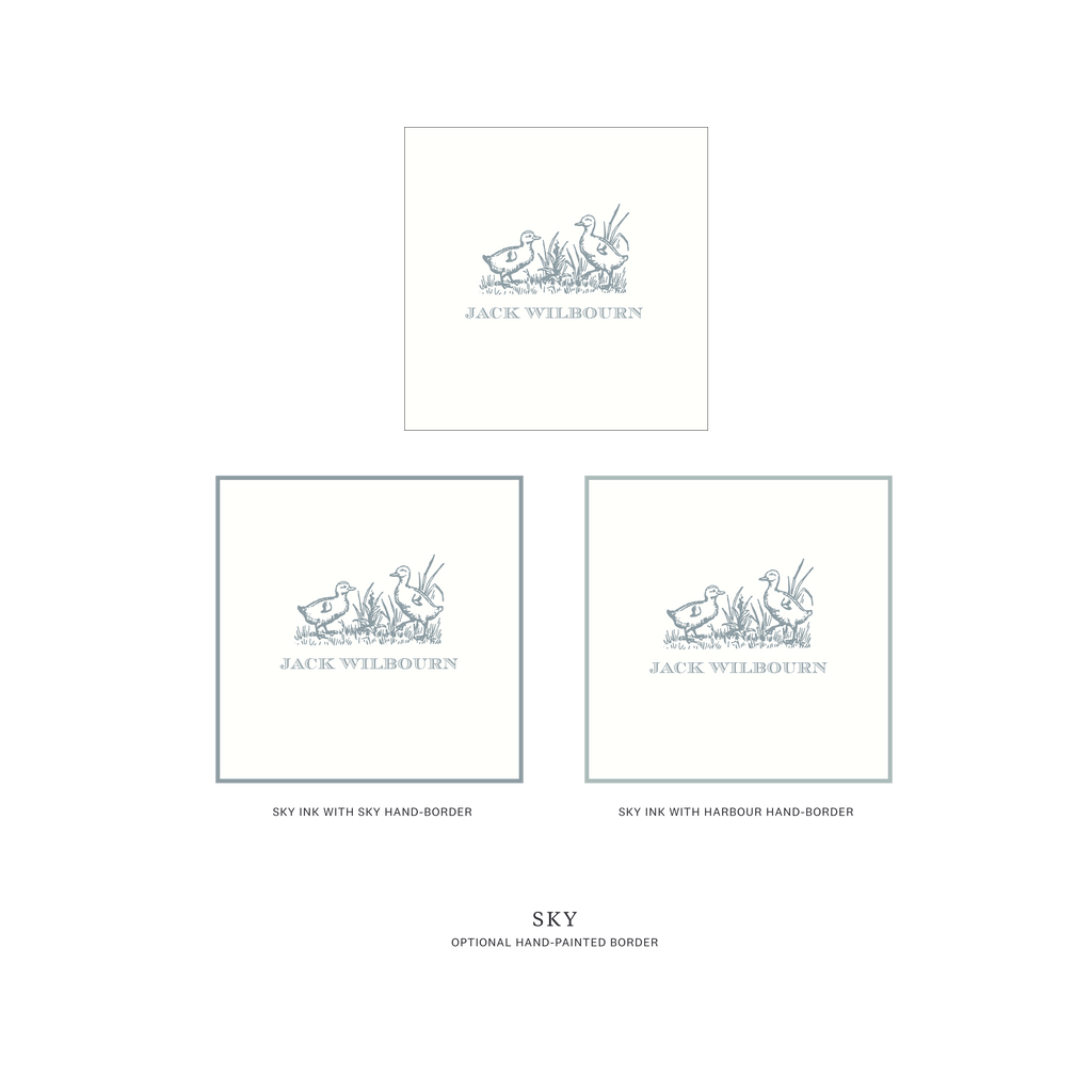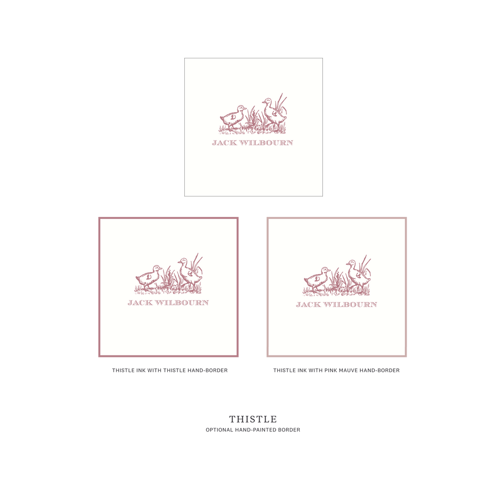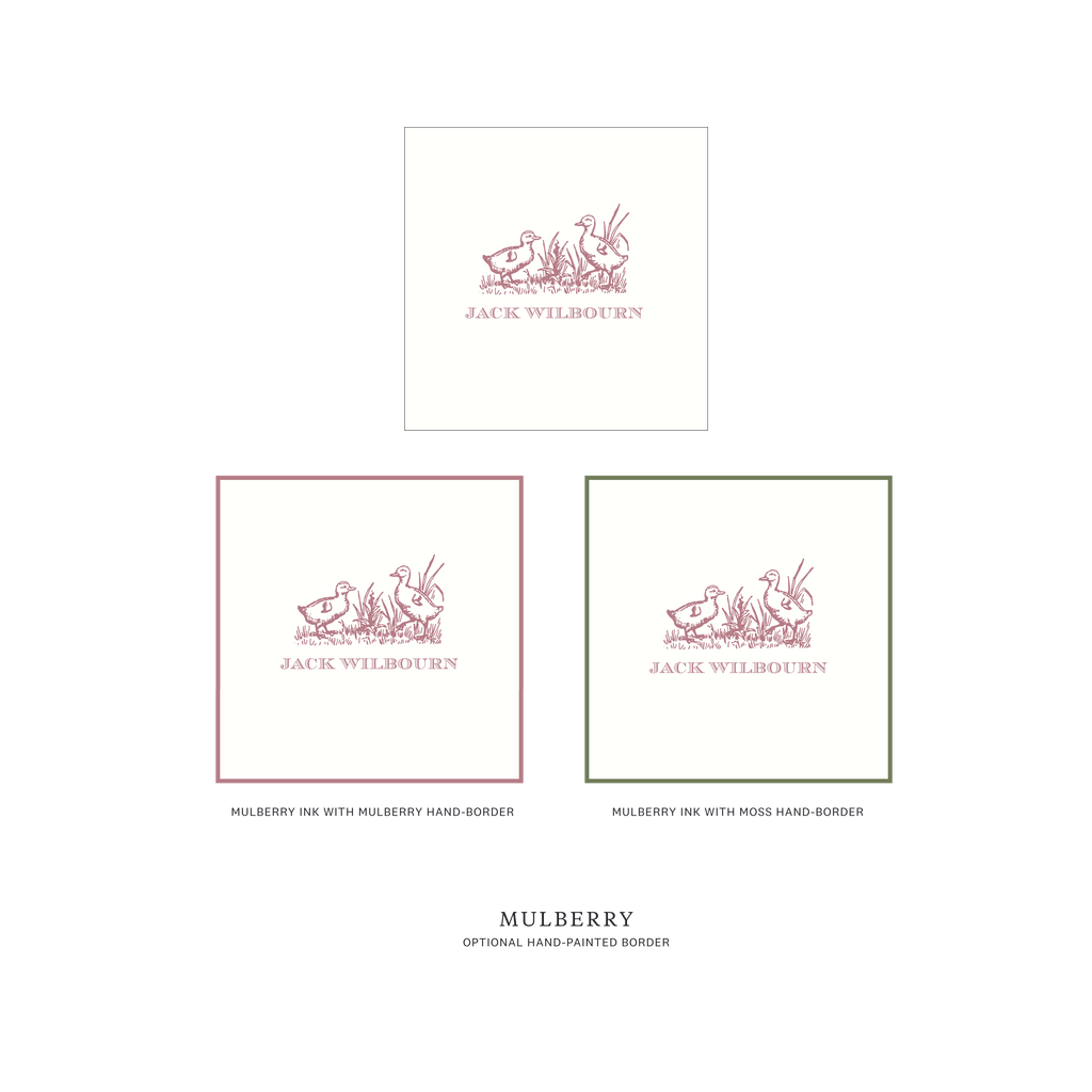 Sweet and timeless, the Heath Motif Gift Enclosure features our hand-drawn duck illustration paired with classic typography.