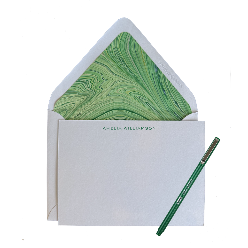 A classic, personalized stationery set—ready to gift or use right away. Each set is custom printed with your name in your choice of font style, making it perfect for thank you notes, thoughtful gifts, or everyday correspondence.