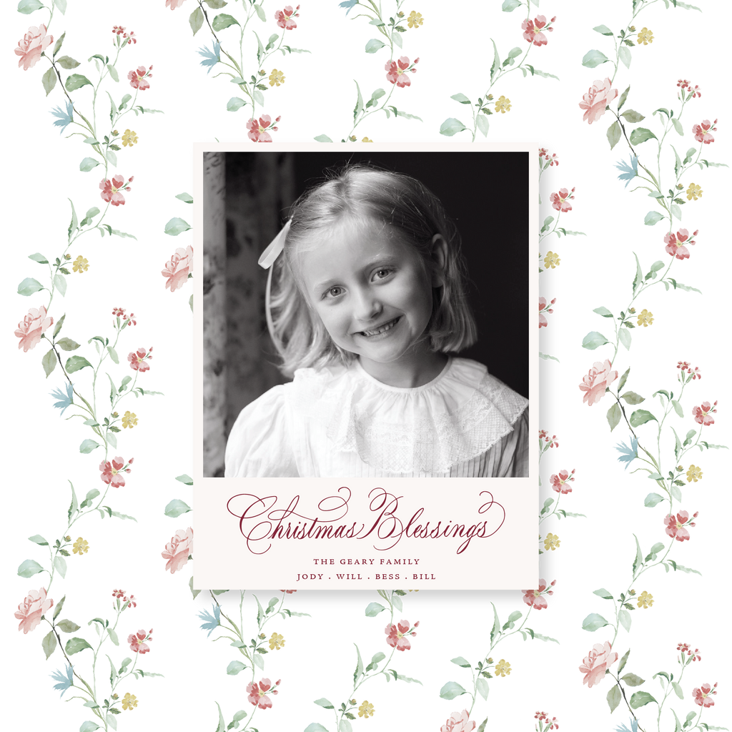 The Laura Card highlights the elegant calligraphy of Laura Lines, paired with a refined color palette. Each card is letterpressed on double thick paper with sage or berry ink, creating a rich yet delicate contrast that feels festive and timeless.