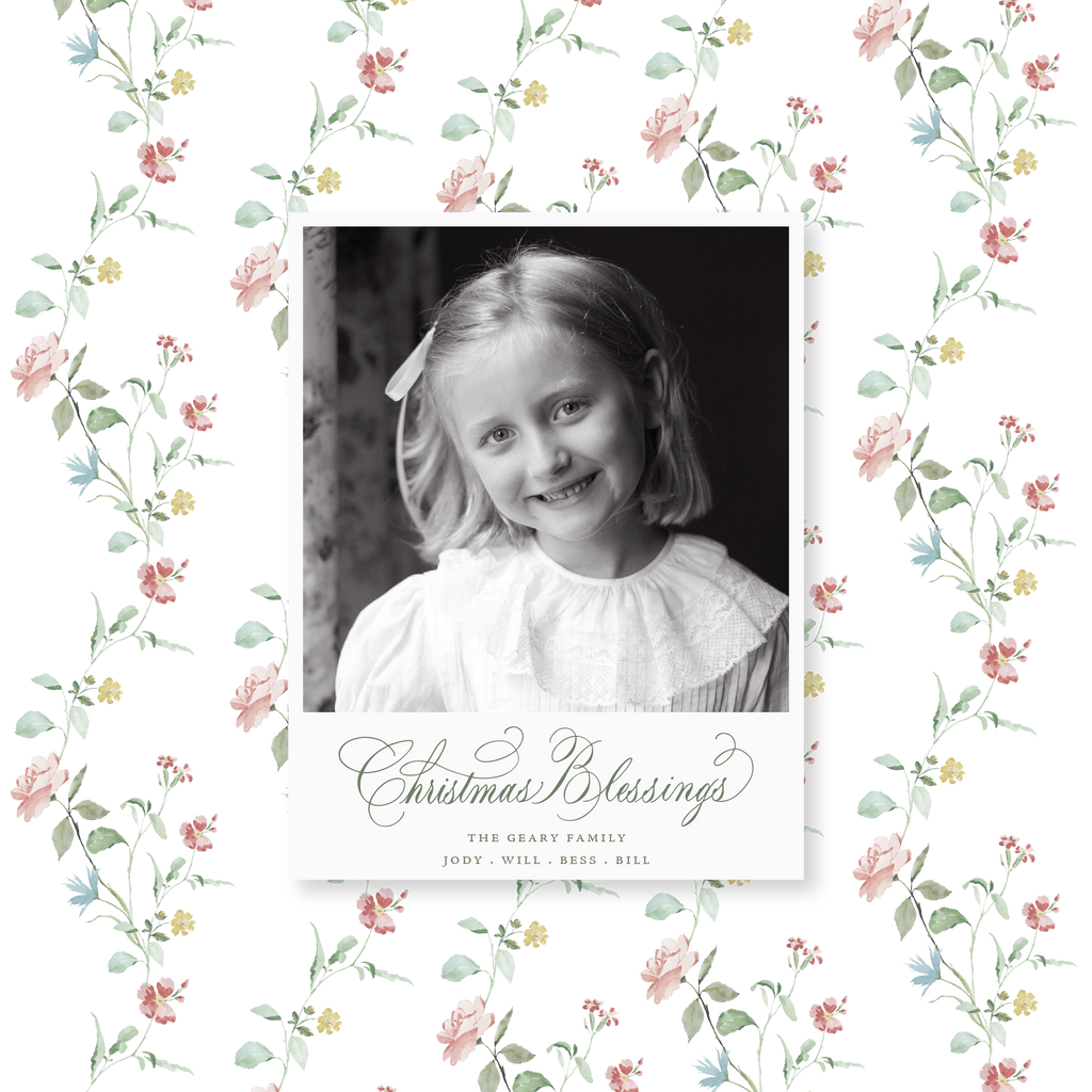 Measuring 4.25 x 5.5", the card is designed for a 4x4" photo and includes a pale pink envelope. To elevate the design, you can add an optional coordinating liner. A beautiful choice for those who love the art of hand-lettering and subtle, sophisticated design.