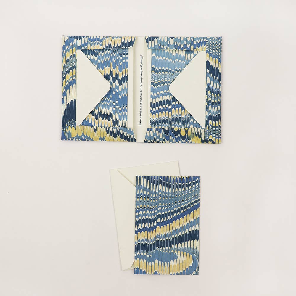 This collectible greeting card set is a series of simple yet thoughtfully crafted cards made with 100% recycled cotton handmade paper. Produced in small batches only by Master Artisans who are practicing the craft of paper making & hand marbling for generations.