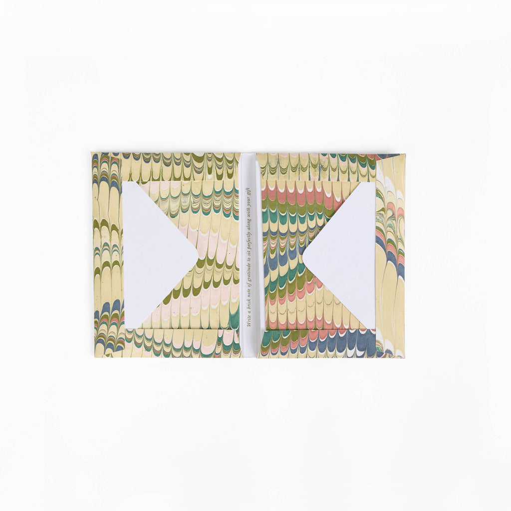 This collectible greeting card set is a series of simple yet thoughtfully crafted cards made with 100% recycled cotton handmade paper. Produced in small batches only by Master Artisans who are practicing the craft of paper making & hand marbling for generations.