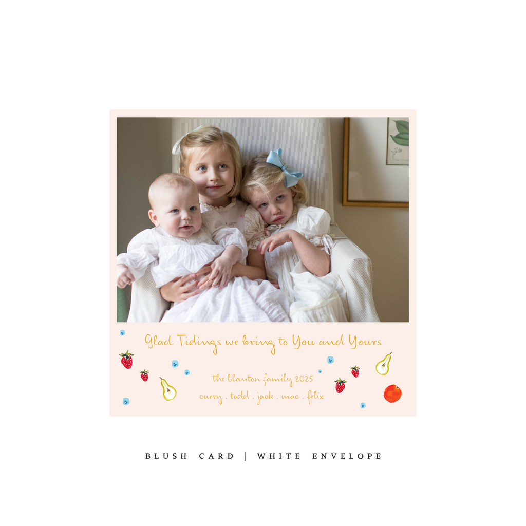 The Melba Card from the Lauren Q Collection features playful colors and original artwork, designed to bring a vibrant, modern feel to your holiday greetings. Measuring 5.25 x 5.25", this card is made for a 3.5 x 5" photo.