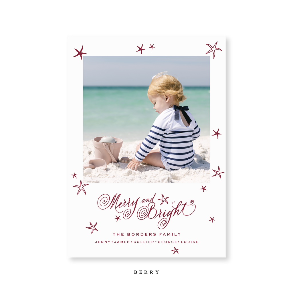 The Caroline Letterpress Card from the Caroline Borders x Jody Geary Holiday Card Collection combines elegant calligraphy with versatile design options. Measuring 5 x 7", this card is available in four colorway options and is designed for a 4 x 4" photo.
