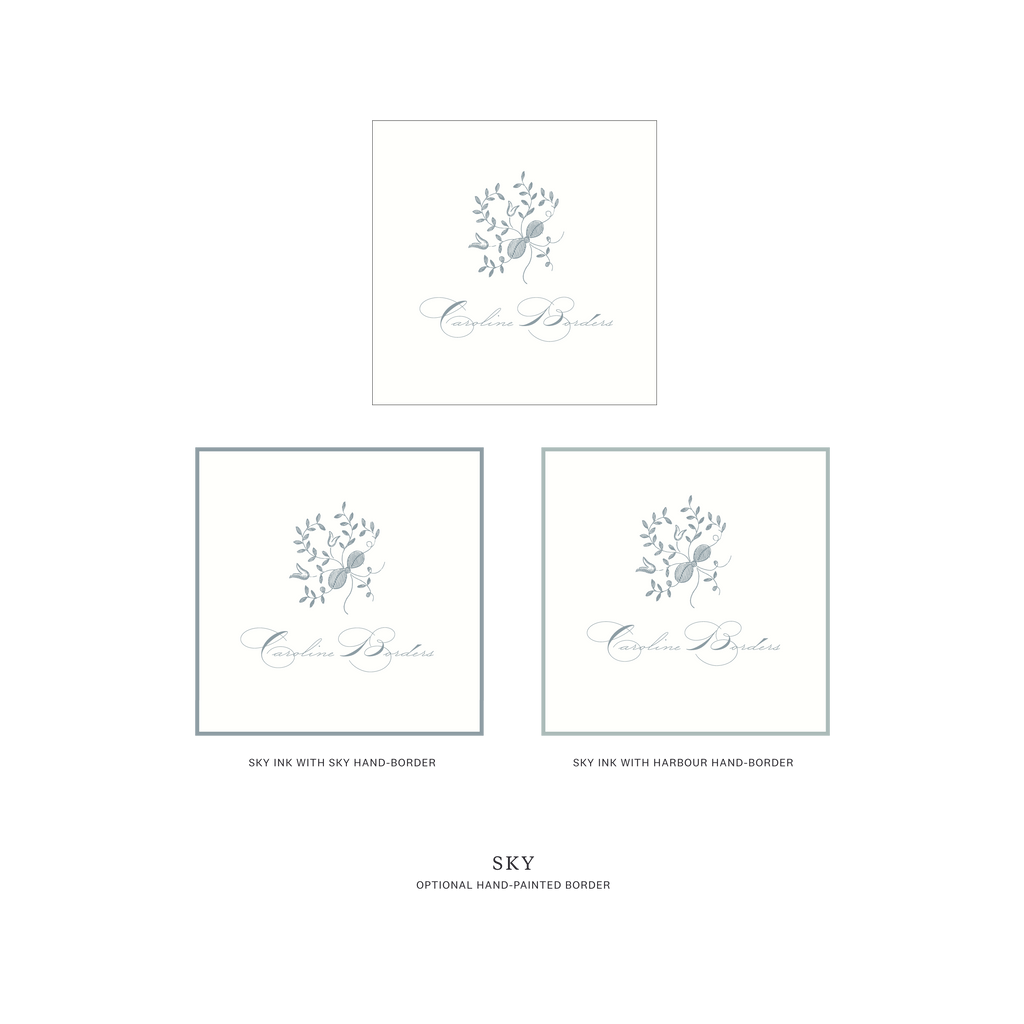 Hand Border: Optional hand-applied border in eight coordinating ink colors