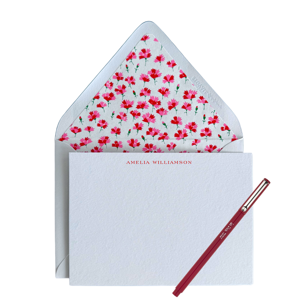 A classic, personalized stationery set—ready to gift or use right away. Each set is custom printed with your name in your choice of font style, making it perfect for thank you notes, thoughtful gifts, or everyday correspondence.