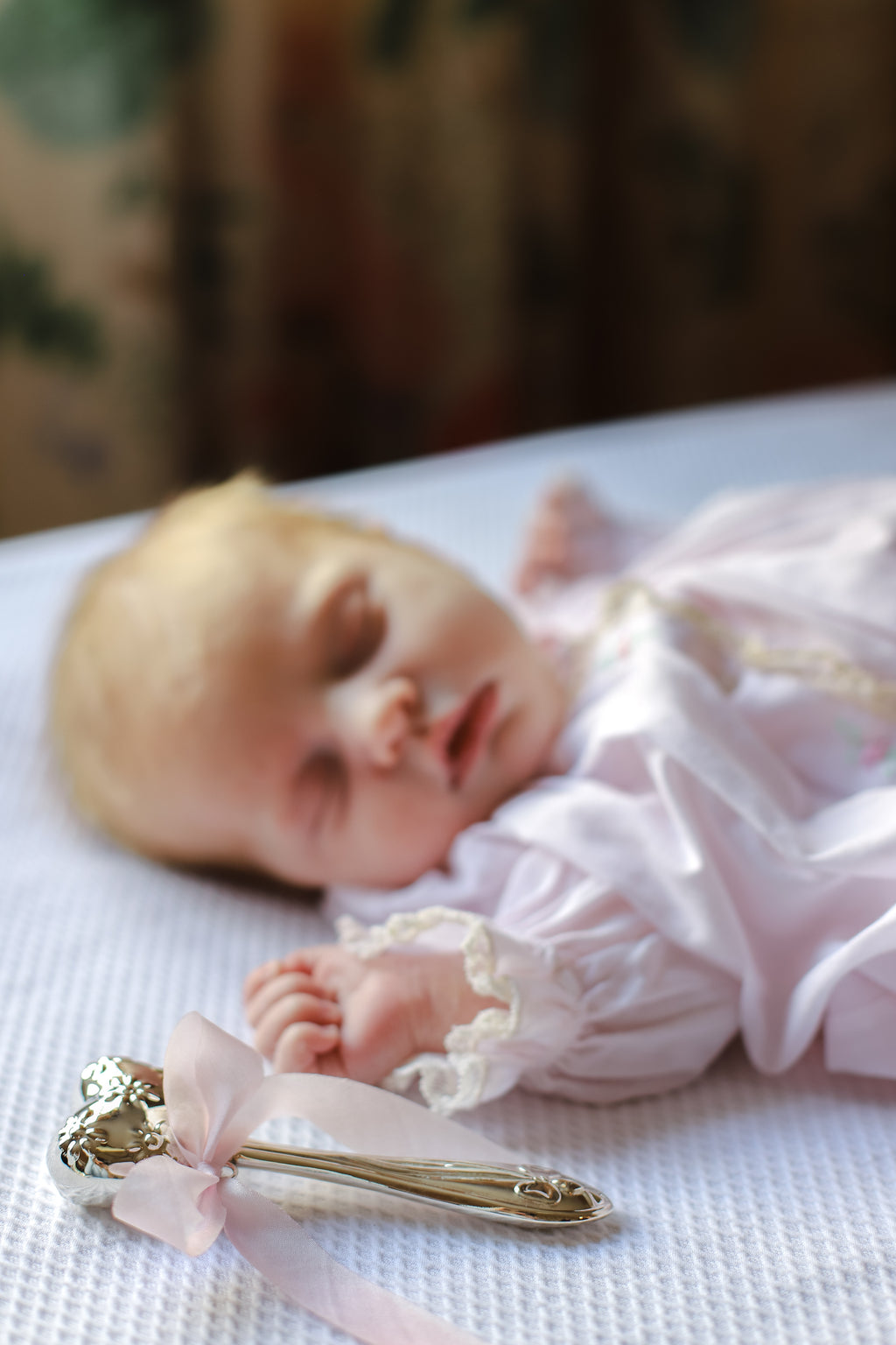 A timeless keepsake crafted from sterling silver, this gentle rattle brings soothing sounds and sensory comfort to your little one.