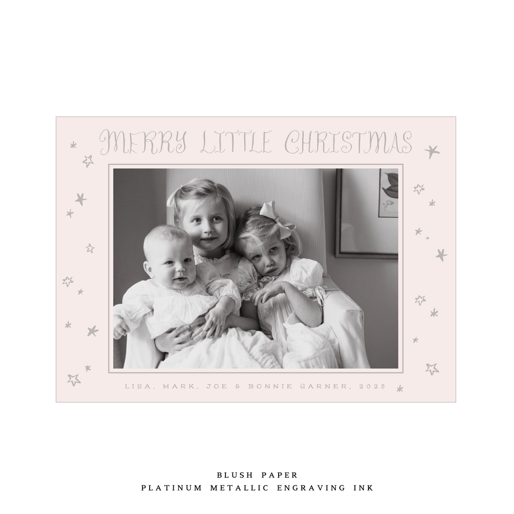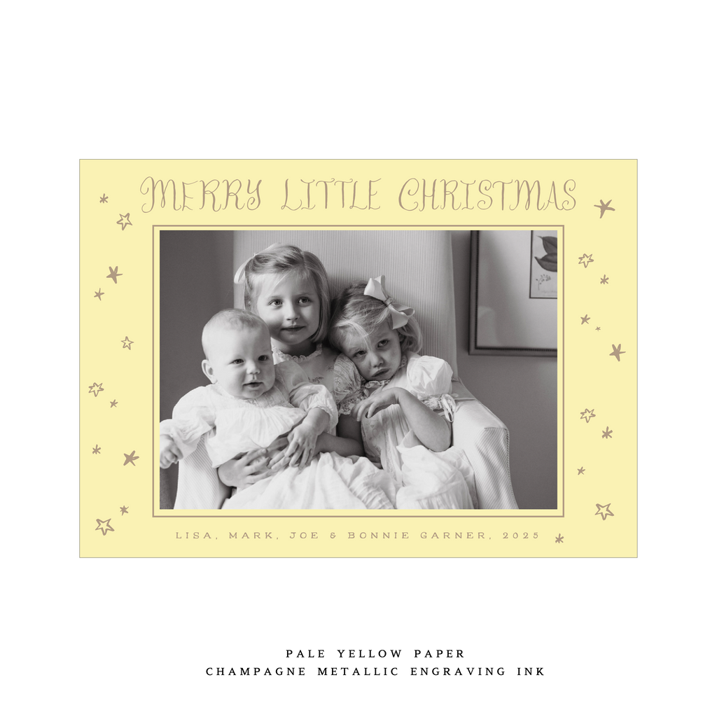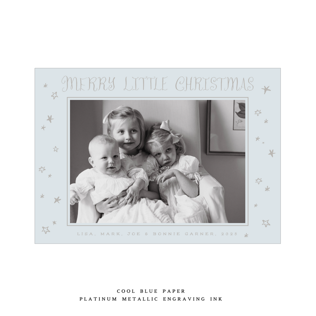 Measuring 5 x 7", the card is designed for a 3.5 x 5" photo and is printed on luxurious double-thick paper. Each card includes an engraved return address, and the envelope is perfectly matched to the paper color for a seamless finish. This thoughtful pairing of paper, ink, and artistry makes the Kirby Card a standout option in our holiday collection.