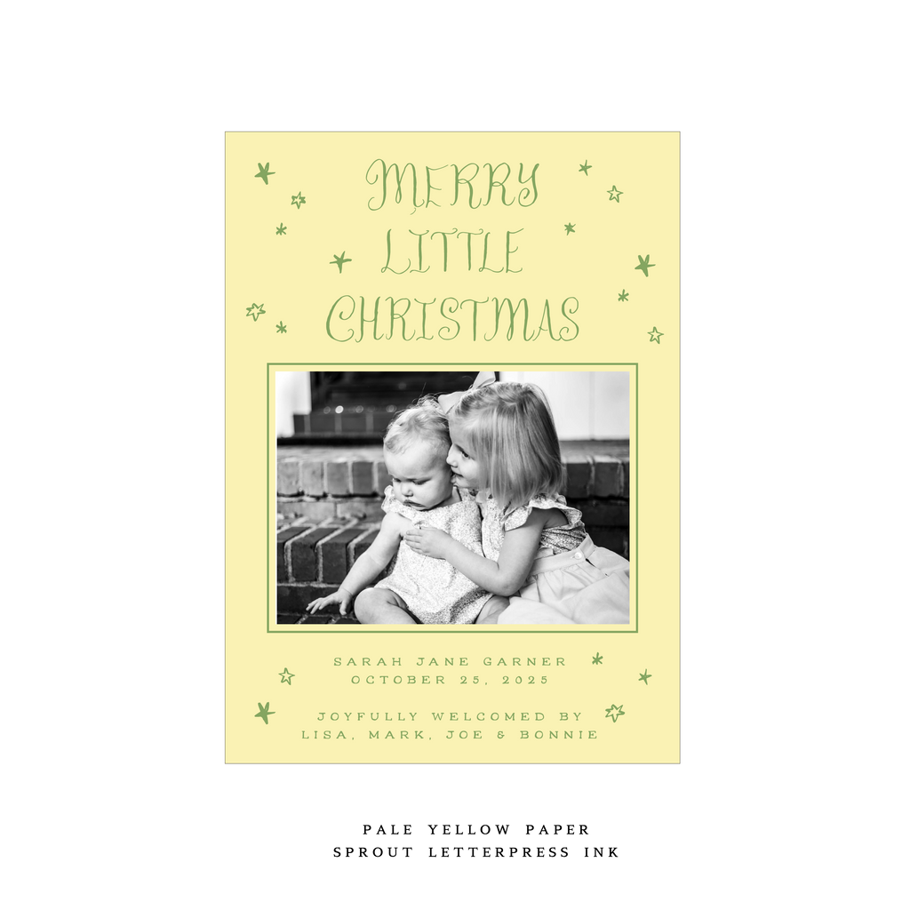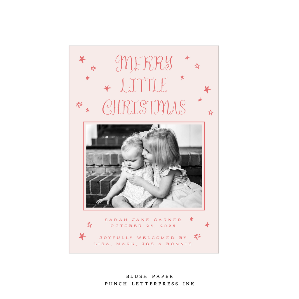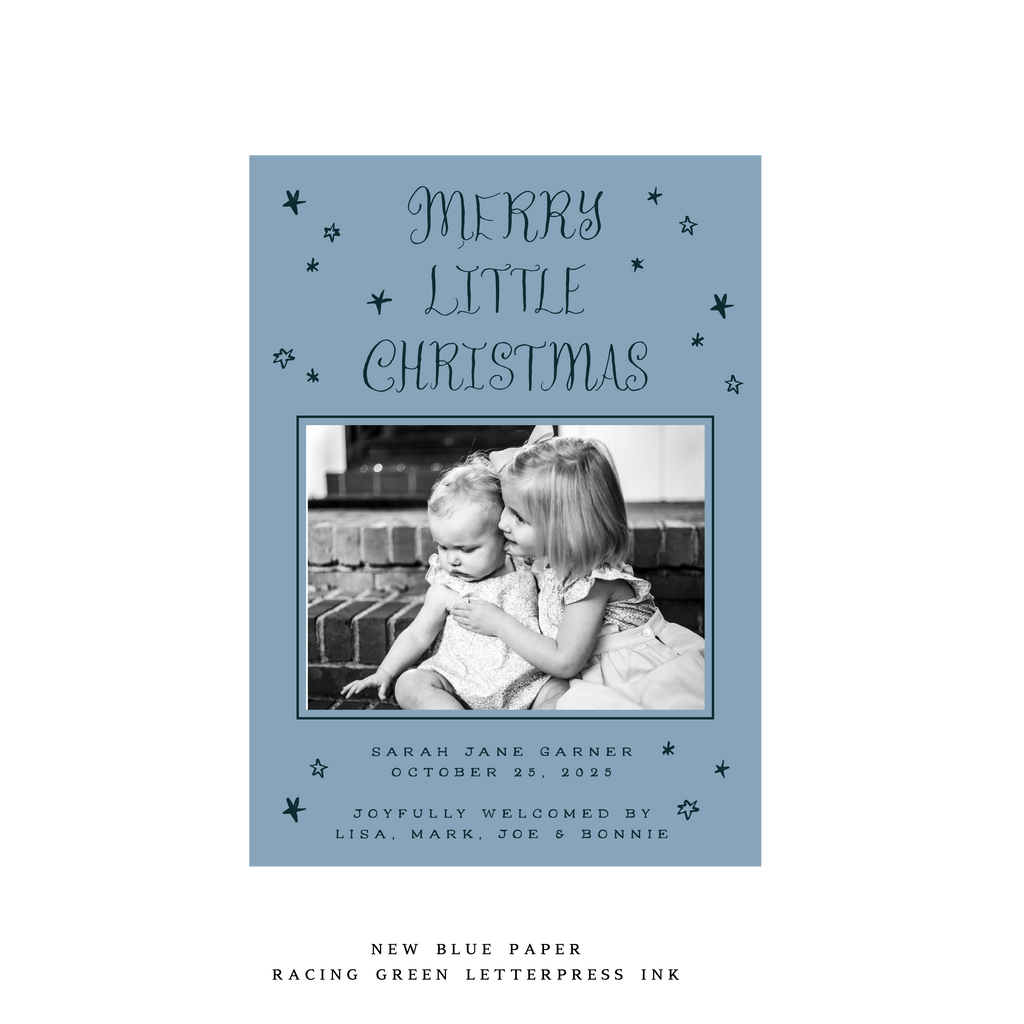 Measuring 5 x 7", the card is designed for a 3.5 x 2.5" photo and is printed on luxurious double-thick paper. Each card includes a letterpress return address, and the envelope is perfectly matched to the paper color for a seamless finish. This thoughtful pairing of paper, ink, and artistry makes the Kirby Card a standout option in our holiday collection.