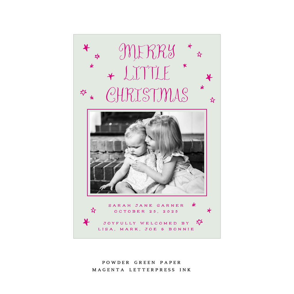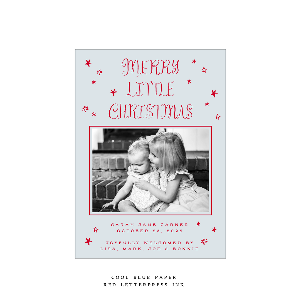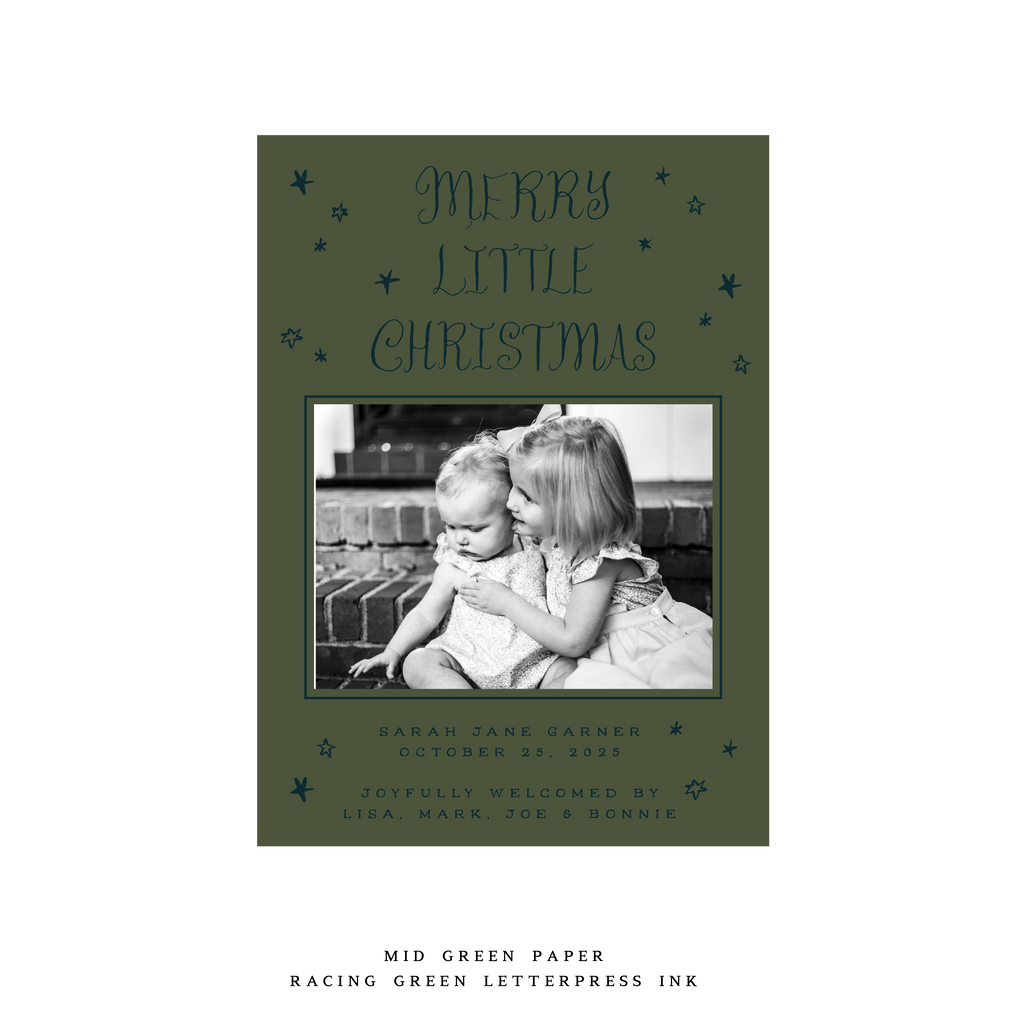 Measuring 5 x 7", the card is designed for a 3.5 x 2.5" photo and is printed on luxurious double-thick paper. Each card includes a letterpress return address, and the envelope is perfectly matched to the paper color for a seamless finish. This thoughtful pairing of paper, ink, and artistry makes the Kirby Card a standout option in our holiday collection.
